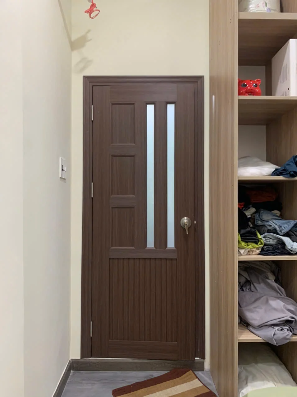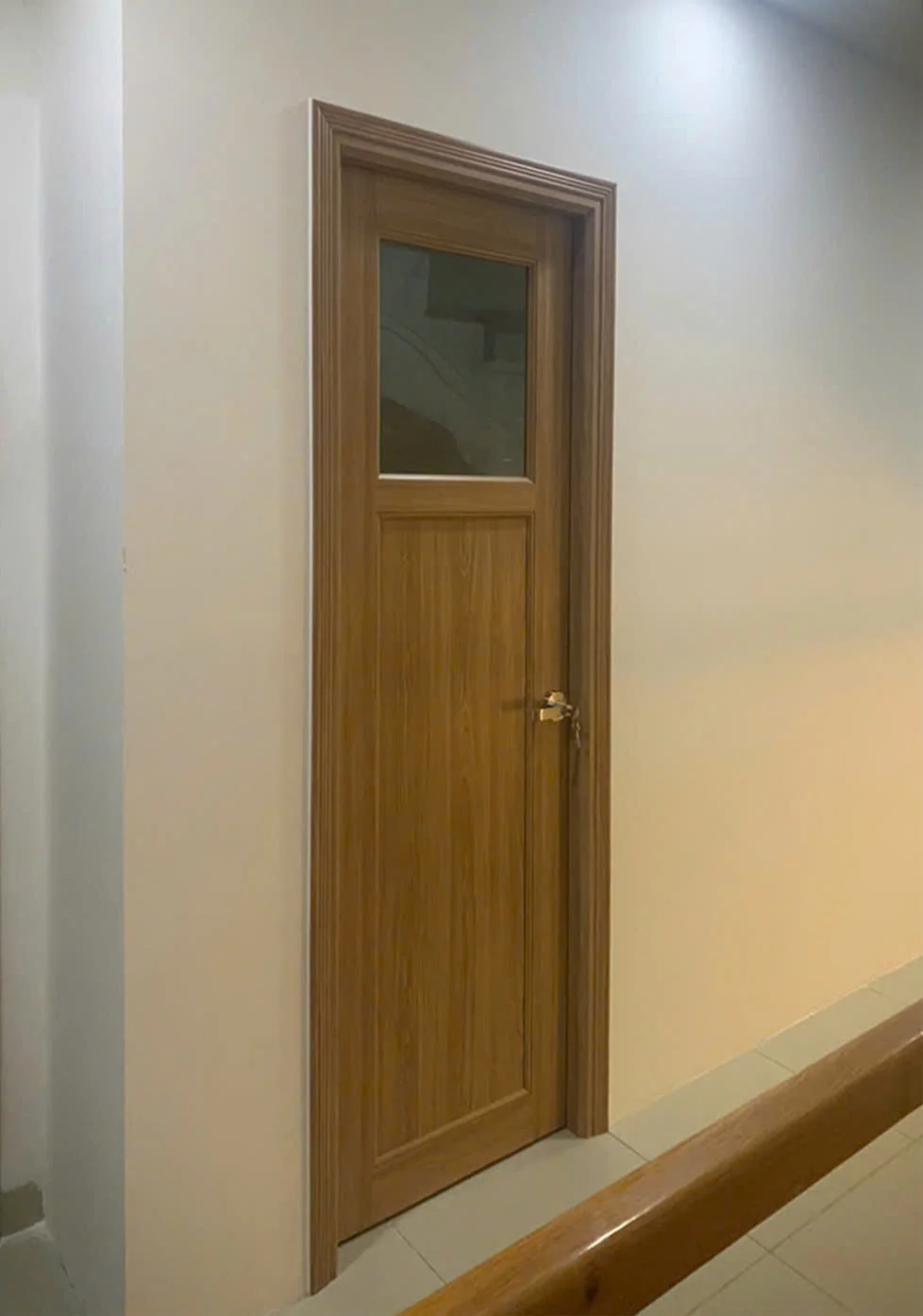 | Cửa nhựa Đài Loan ghép thanh tại Diên Khánh – Đồng Nai – Kích thước: (800 x 2.150)mm – Độ dày cánh 35 mm (± 2) . – Kết cấu cánh bằng nhựa ghép thanh – Khung bao PVC . – Phủ vân gỗ . |