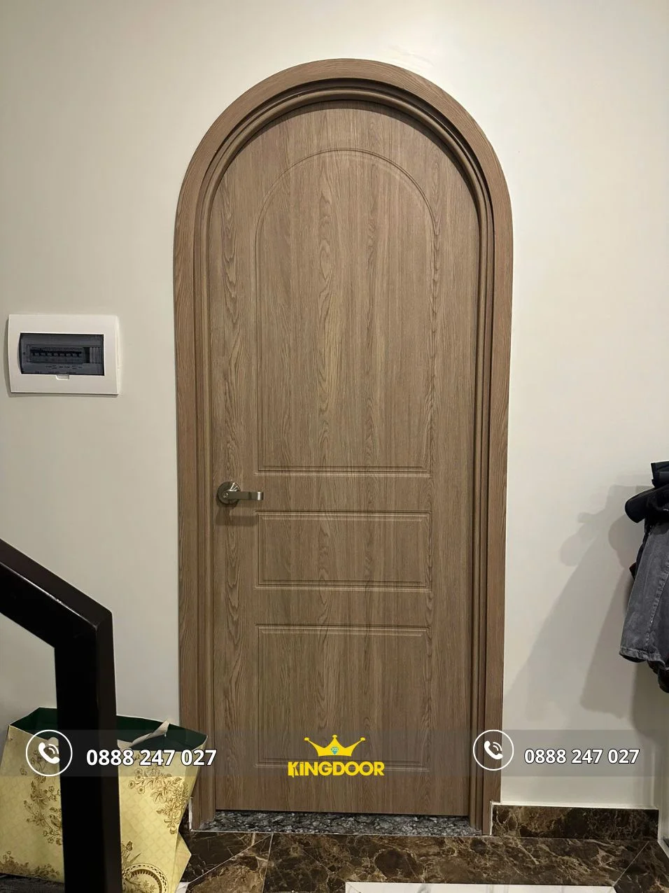 Khác với cửa gỗ tự nhiên, cửa vòm nhựa composite ổn định lâu dài, không co ngót hay biến dạng do thời tiết.