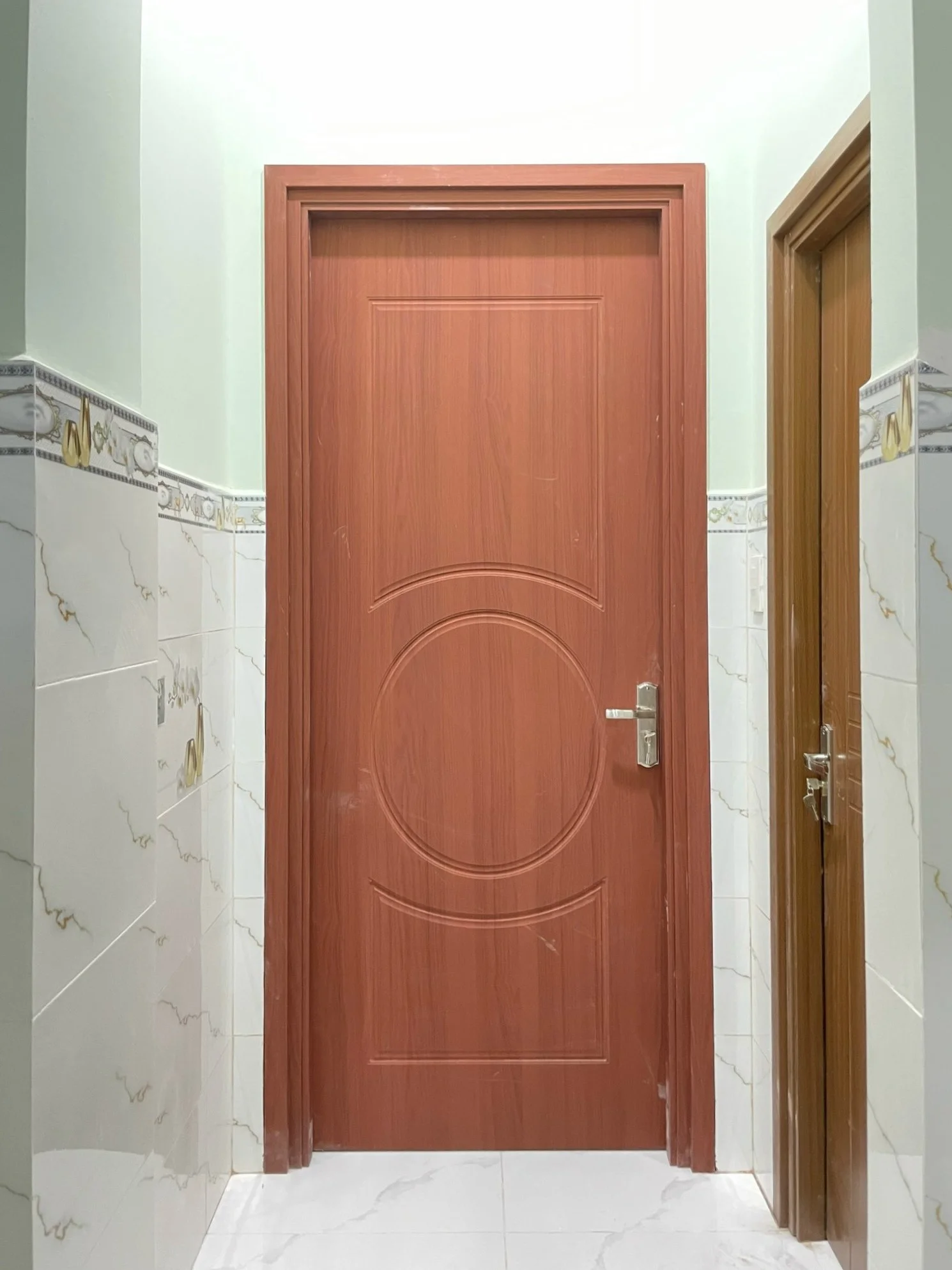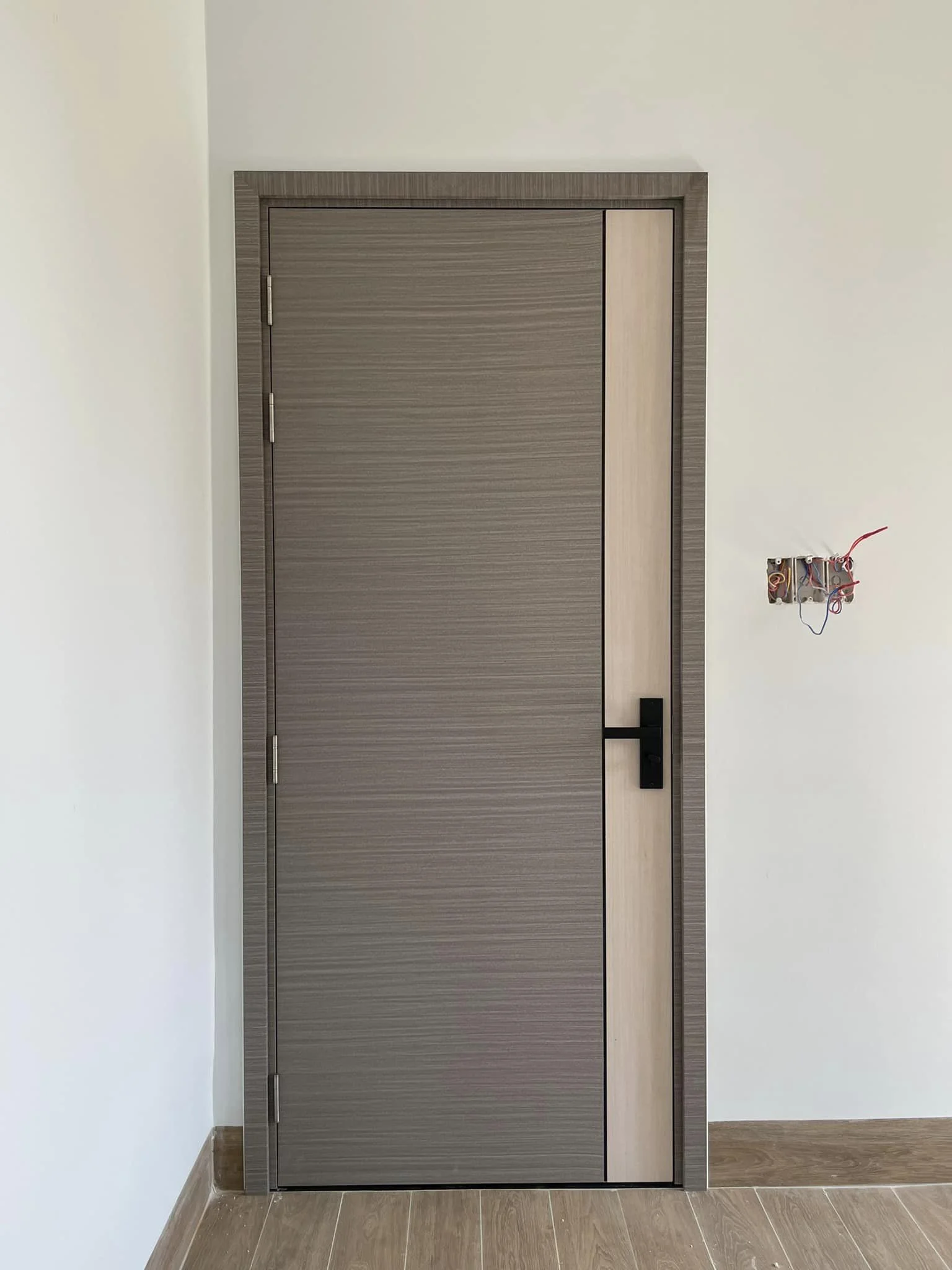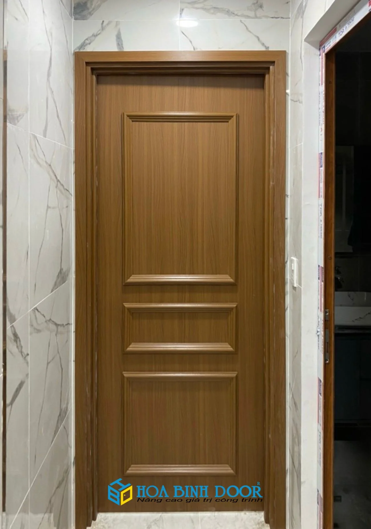 | Cửa nhựa composite luxury – Kích thước: (900 x 2200)mm – Độ dày cánh 40 mm (± 2) . – Kết cấu cánh bằng bột nhựa và bột gỗ – Khung bao ( 45 x 90 )mm – Phủ da |